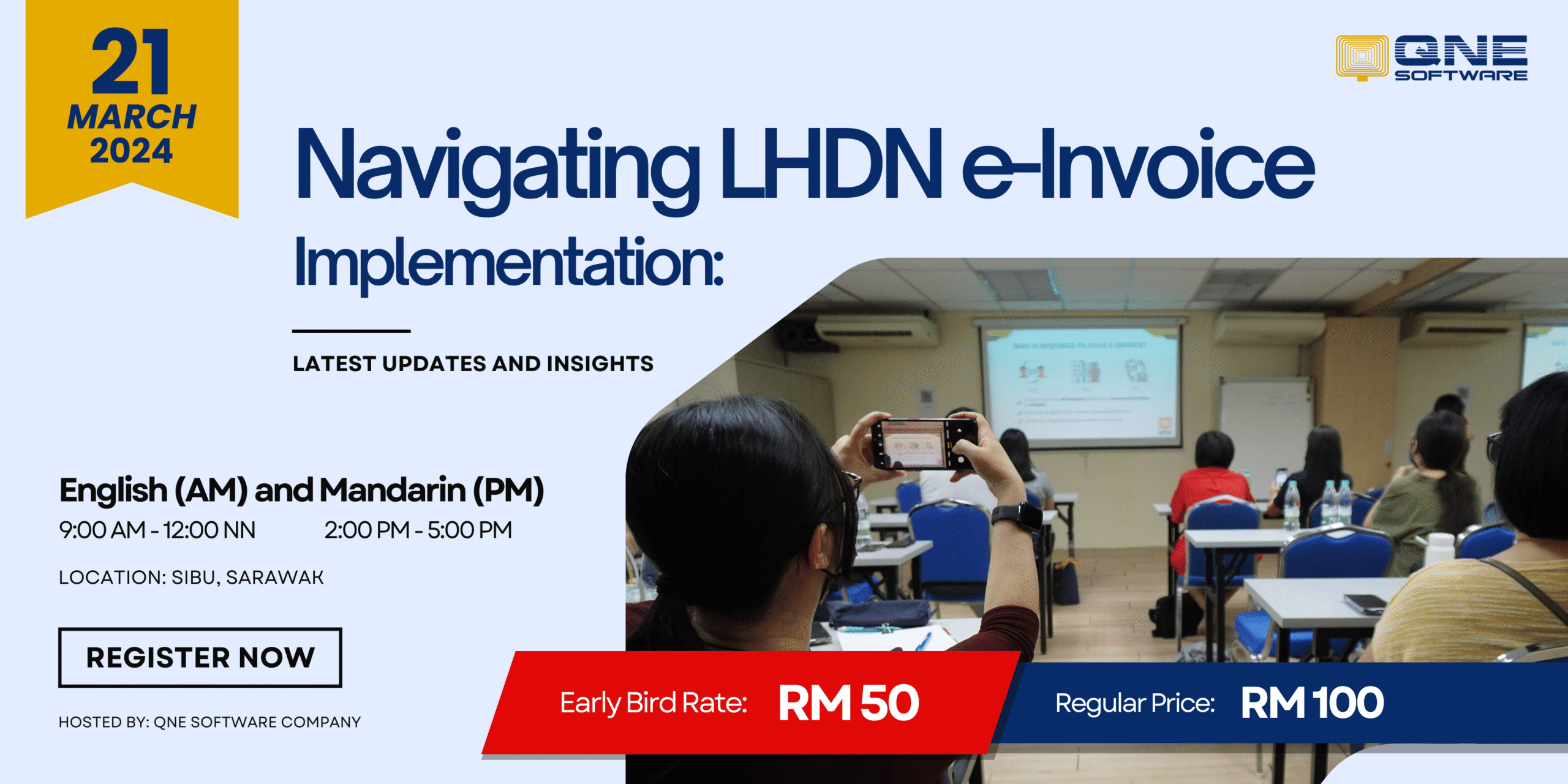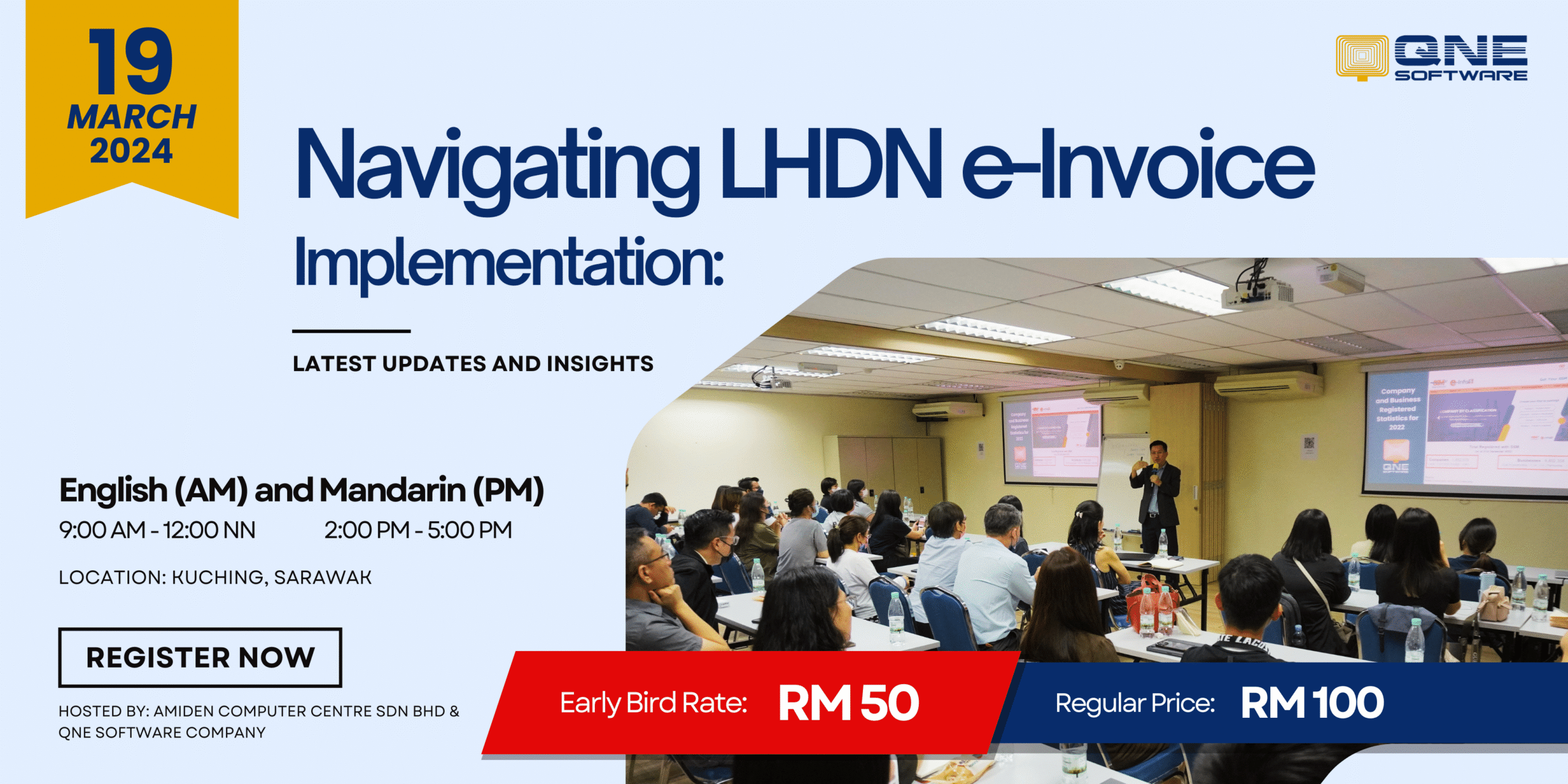 March 21, 2024 @ 9:00 am - 5:00 pm Navigating LHDN e-invoice Implementation: Latest Updates and Insights Sibu Sarawak, Malaysia MYR50