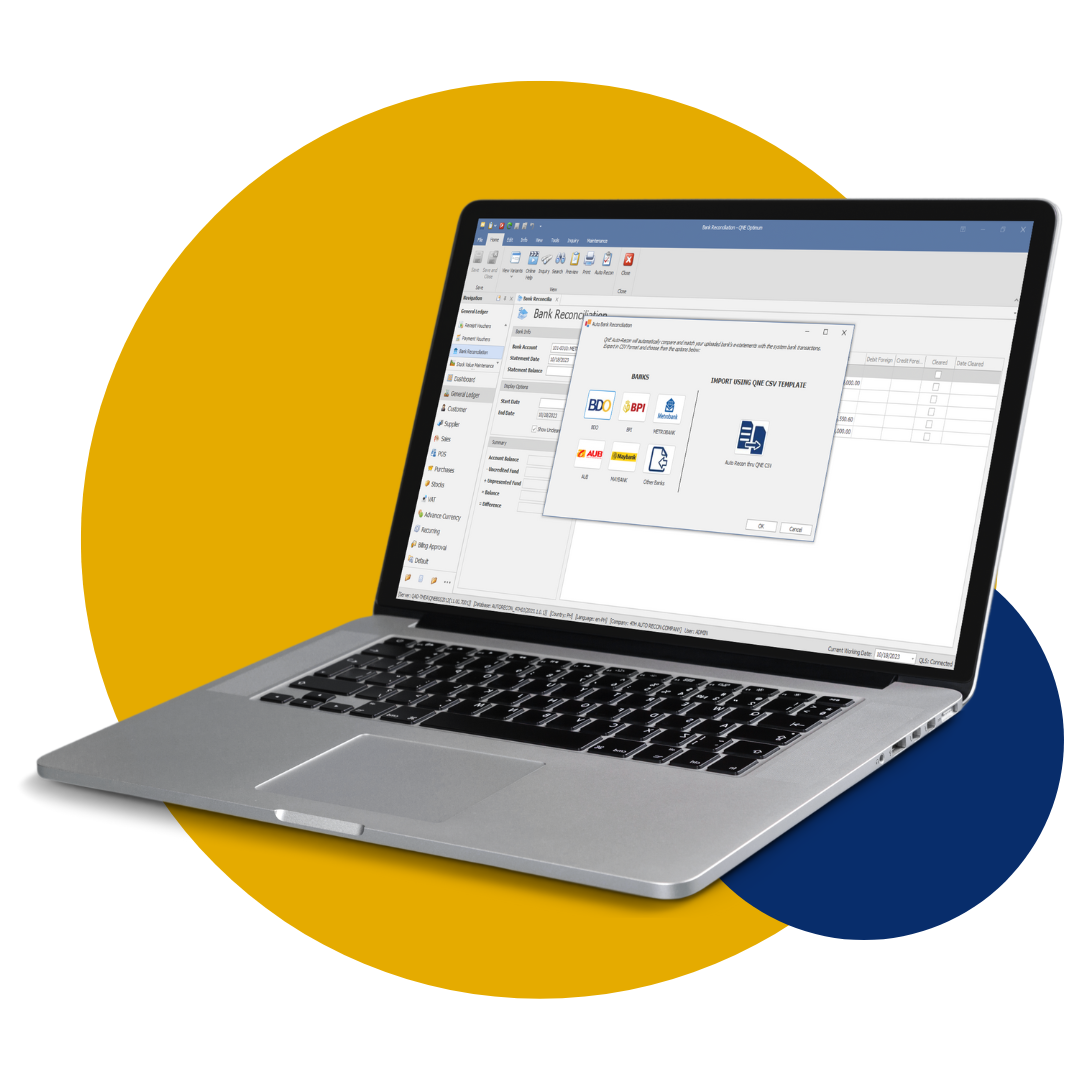 Download your bank statement in CSV file format directly from your online banking platform. QNE Optimum is intelligently designed to read specific CSV files from major banks such as BDO, BPI, Metrobank, AUB, and Maybank. For other banks, our platform provides a flexible solution – import using our own CSV template for a seamless experience.