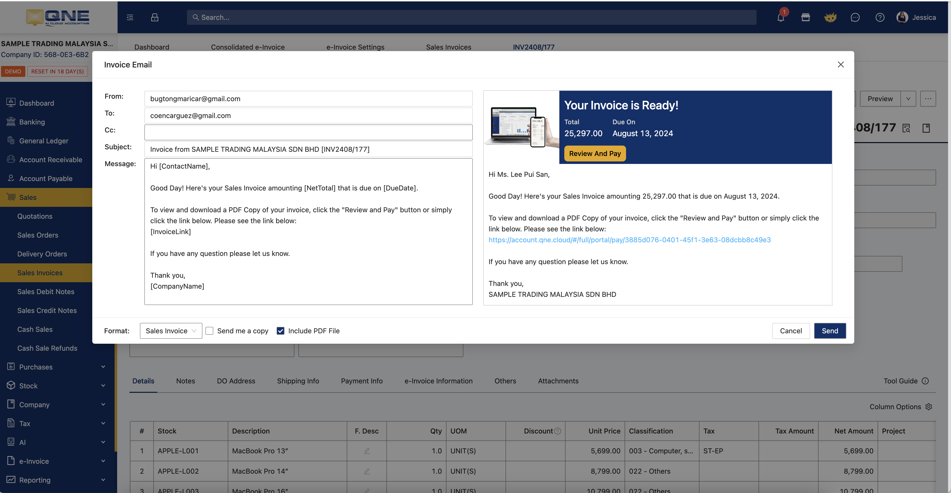 Easily share sales invoices with your customers via email, providing them with all the details they need to process payments quickly.