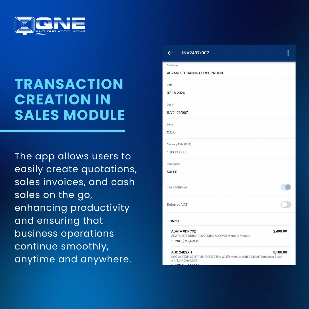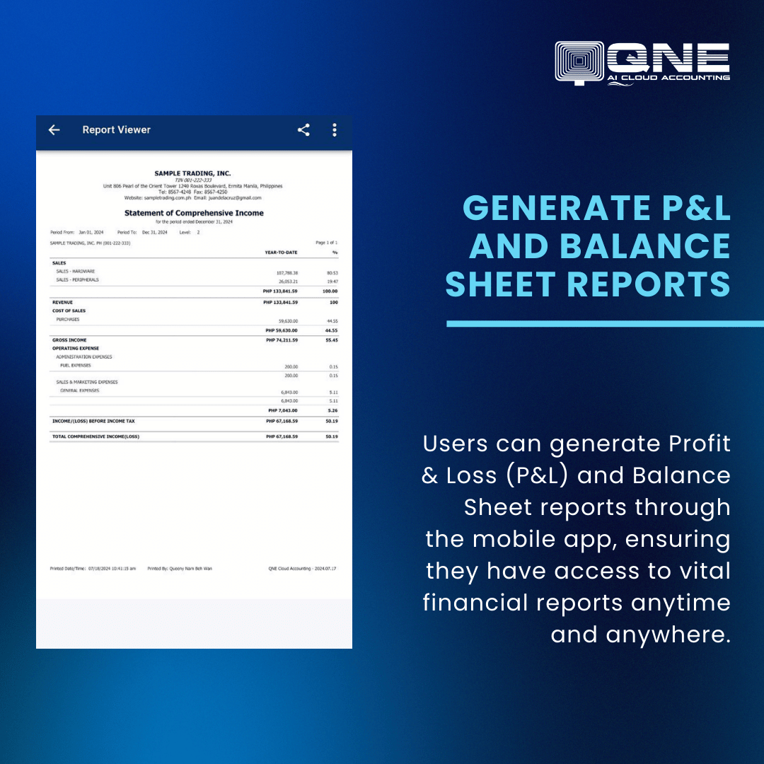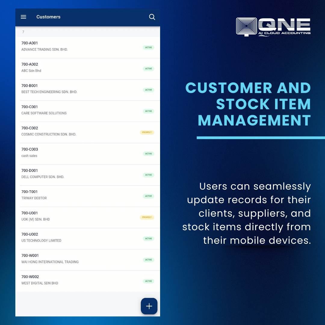 The QNE AI Cloud Accounting Mobile App is designed to revolutionize the way accounting tasks are managed and done, offering a seamless and enhanced experience. With this app, users can now access their financial data anytime, anywhere, right from their smartphones. The app is built with user-friendly navigation and an intuitive interface, making it easier than ever to handle accounting needs on the go.